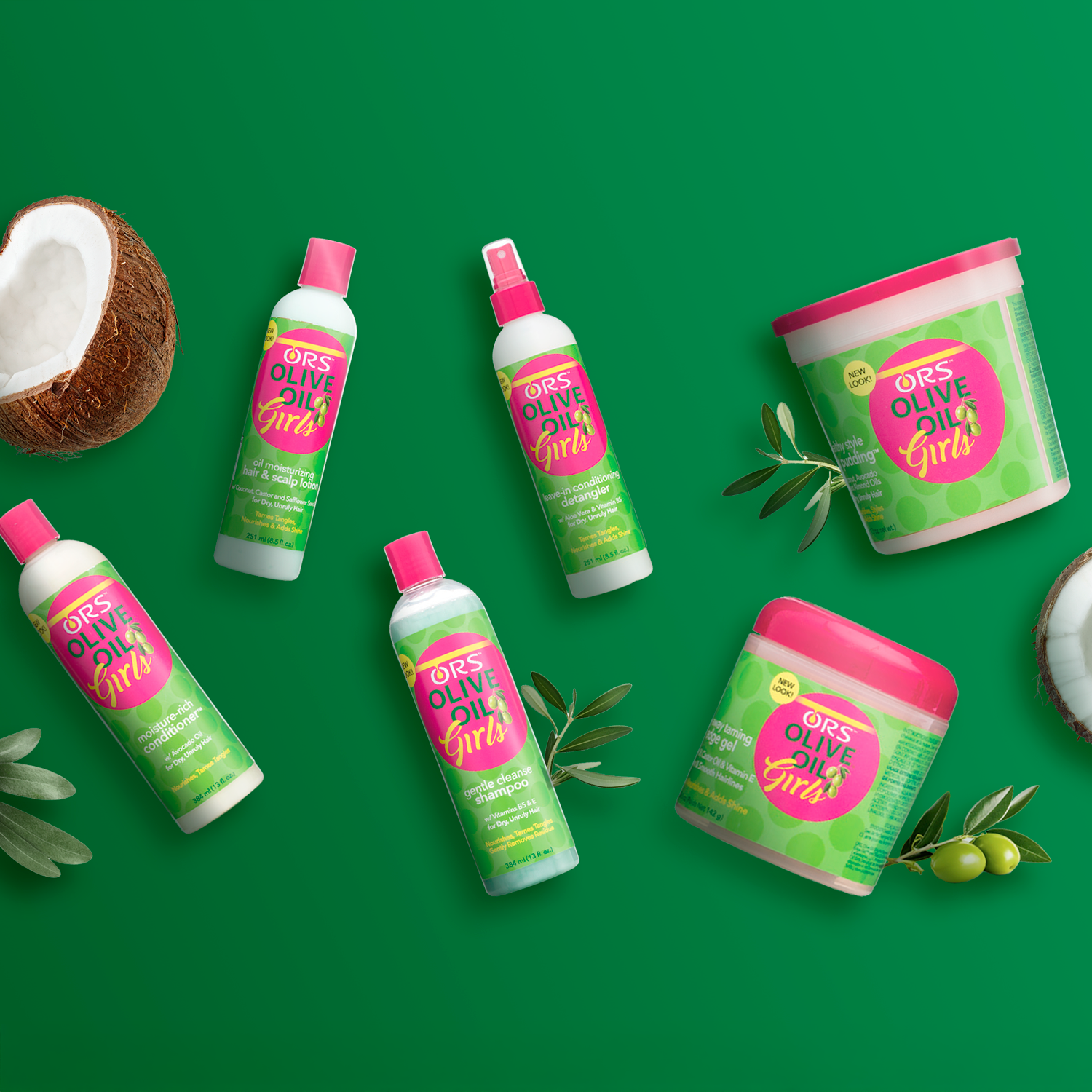 Olive Oil Girls collection gives young strands the gentle care they deserve! Formulated with worry-free ingredients, like moisturizing Olive Oil and shine-boosting Coconut Oil, these products nurture hair from cleansing to styling.