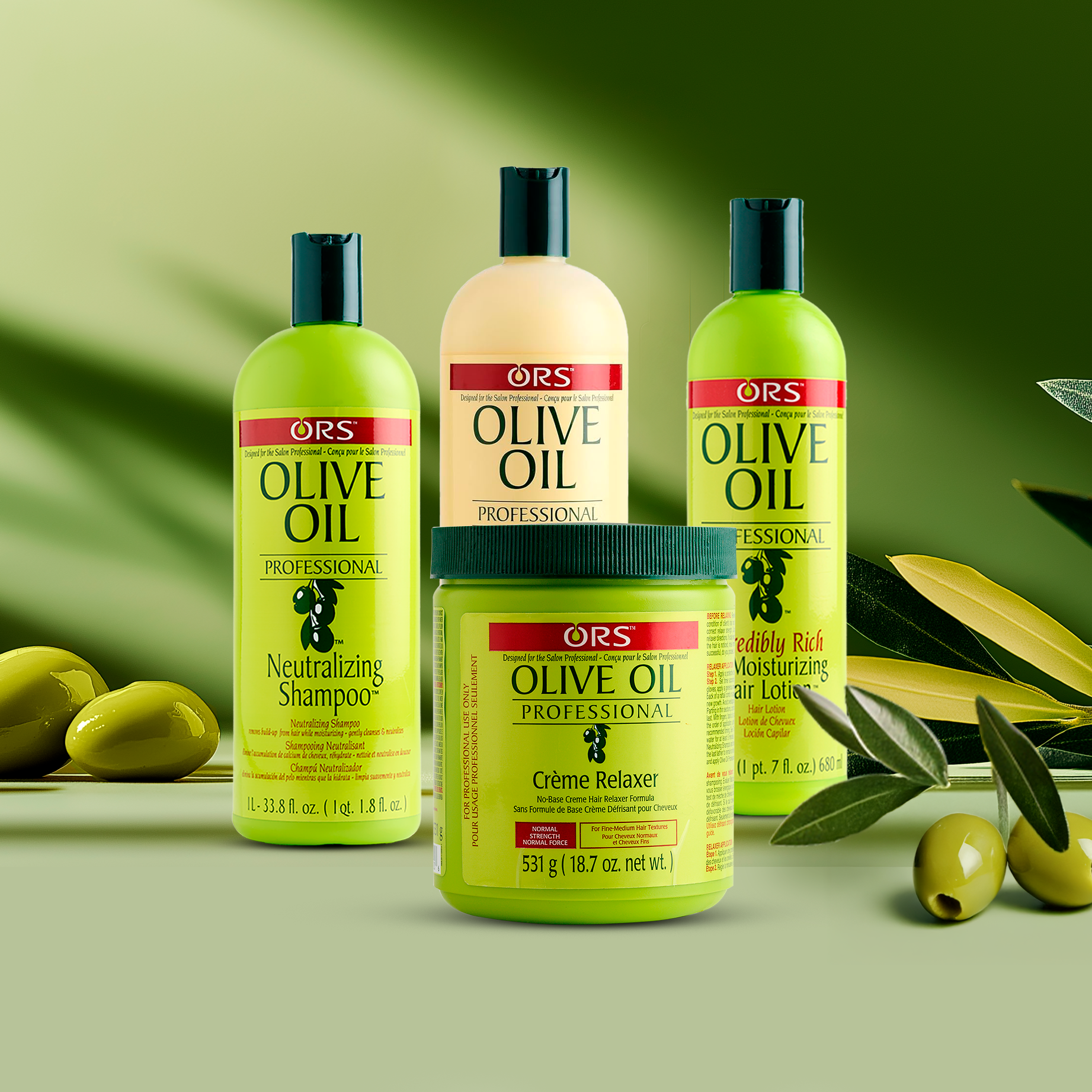 The Olive Oil Professional collection delivers the results salon pros expect. The star of the line is the cream-based relaxer formulas infused with moisturizing Olive Oil to help leave hair silky and soft while protecting it from damage during the relaxing process. Neutralizing Shampoo, Replenishing Conditioner and Incredibly Rich Oil Moisturizing Hair Lotion complete the collection professional stylist’s trust.